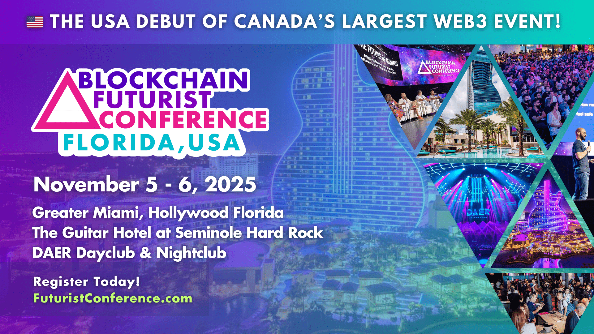 Date: November 5-6, 2025 Time: 8:00 am – 11:00 pm Location: Greater Miami Area, Hollywood Florida, USAThe Guitar Hotel at Hard Rock & DAER1 Lucky St, Davie, FL 33314, United States The 8th edition of Blockchain Futurist Conference, Canada’s largest Web3 event, is crossingborders and bringing its immersive experience to Florida, USA on November 5-6, […]